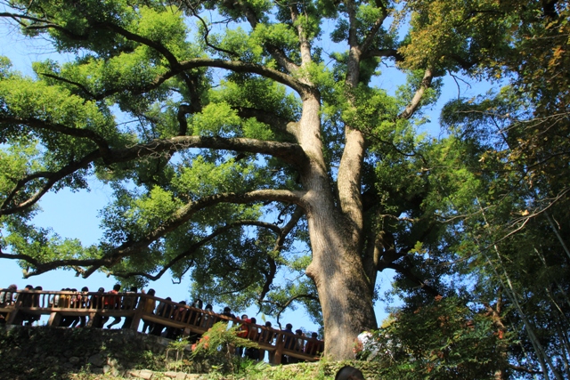 村口需三人合圍的百年古樹。